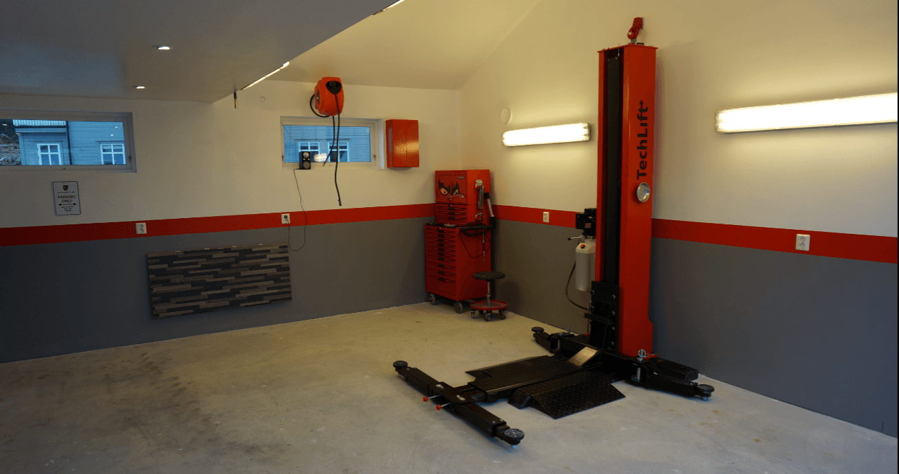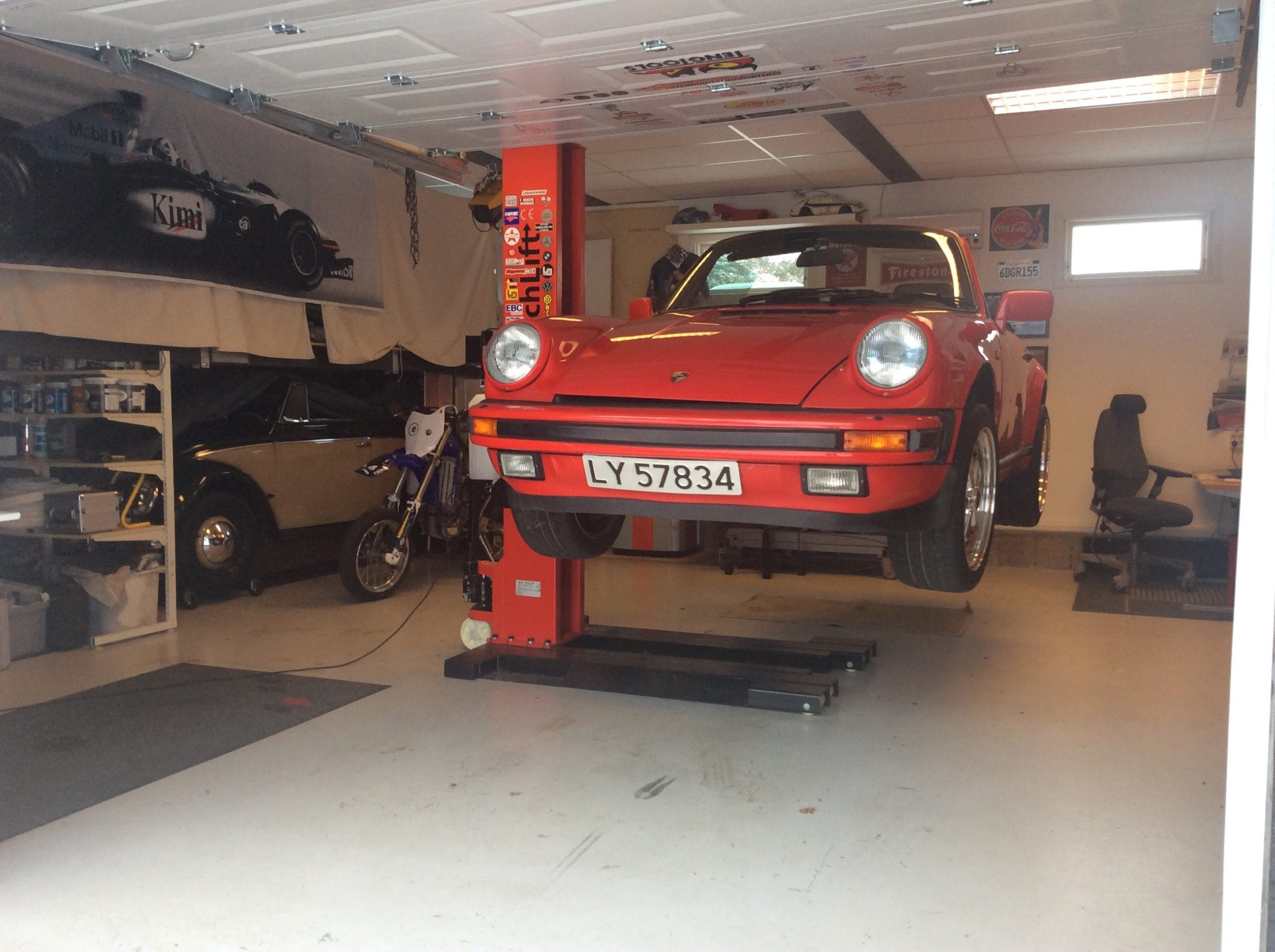 Installerte denne 1-søyle løftebukken i min garasje. Alt virker som det skal. Gikk for en løsning der bukken er boltet fast og motor henger på vegg ved siden av. Siden garasjen bare er 6×6 meter gir dette optimal plassutnyttelse. Det er fremdeles god plass til to biler i bredden. EF Motor har vært veldig behjelpelig…